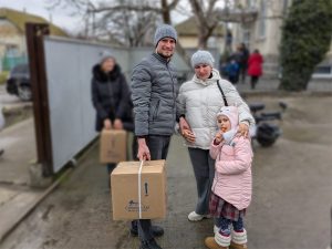 Vasile and his family praise God for the monthly Adopt-A-Family food parcel.